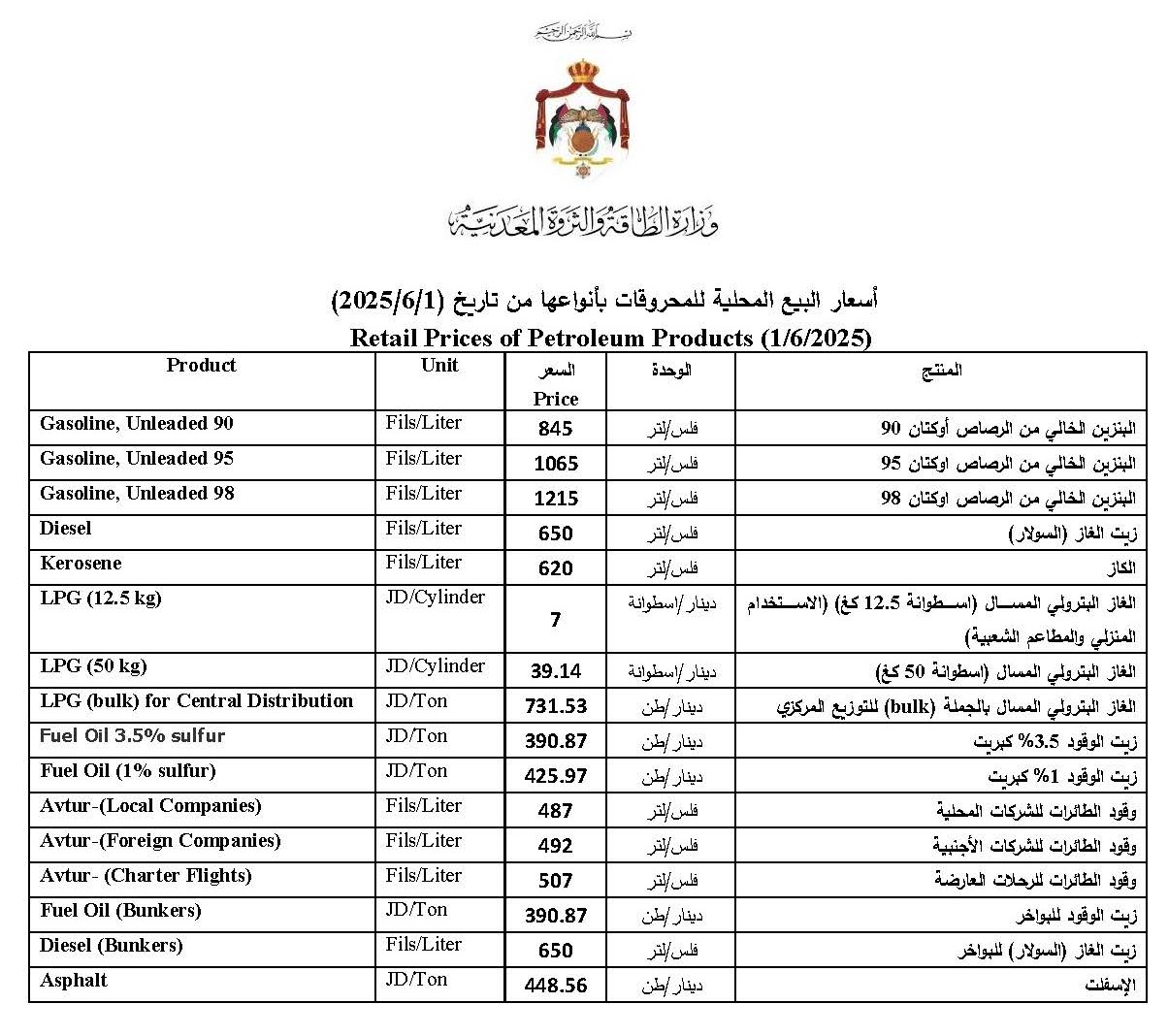 لعرض ولتحميل أسعار البيع المحلية للمحروقات بأنواعها الشهرية انقر هنا
