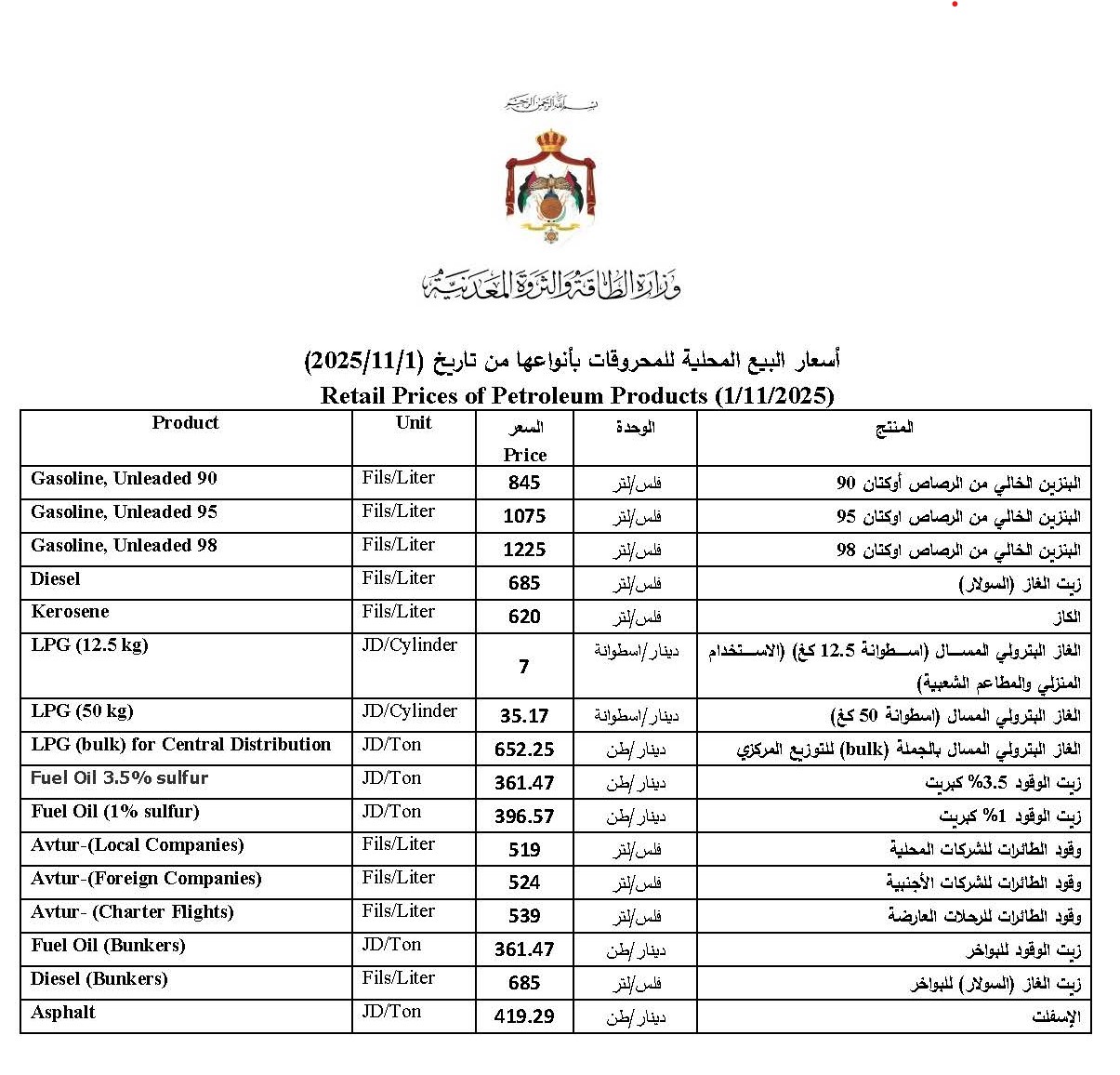 لعرض ولتحميل أسعار البيع المحلية للمحروقات بأنواعها الشهرية انقر هنا